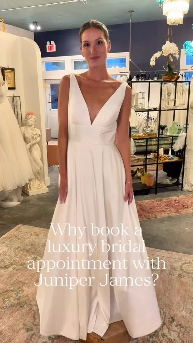 At Juniper James, we understand that choosing your wedding gown is one of the most meaningful decisions you’ll make. This isn’t just a dress—it’s a piece of your story, one you’ll treasure in photos for decades and that future generations may admire. We’re here to help you find a gown that makes you feel as beautiful and radiant as the love you’re celebrating.